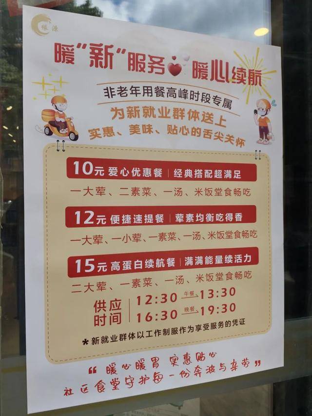 食堂特意将供应时间设定在12:30至13:30以及16:30至19:30,错开了社区长者的集中用餐高峰,也与骑手们的交班、休整节奏无缝衔接。